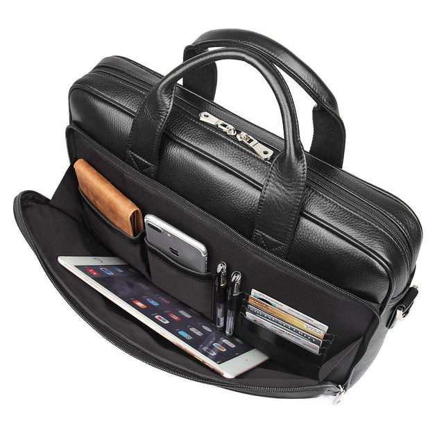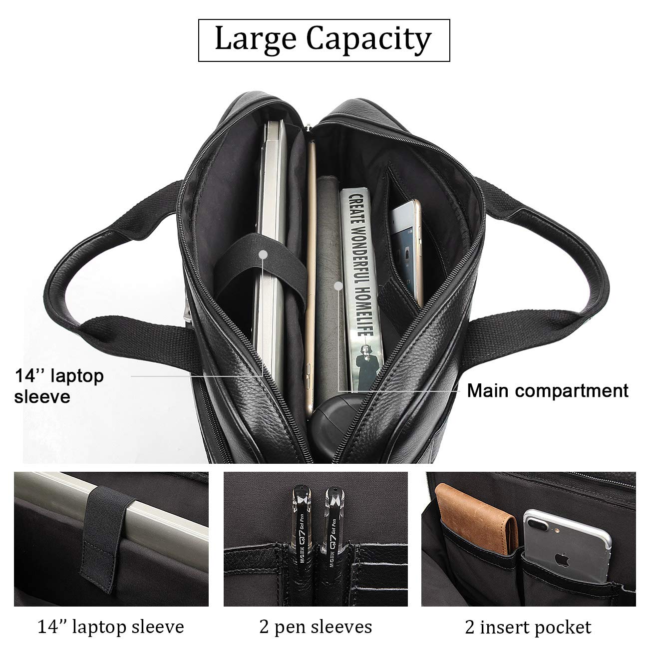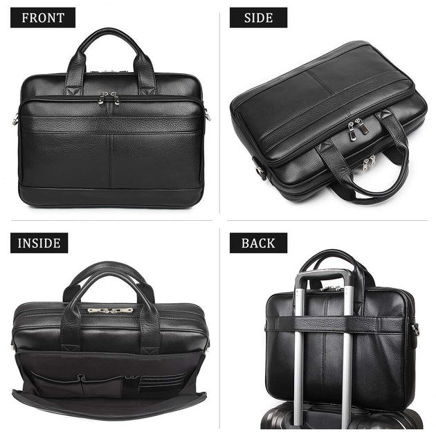 Dimension: 16.2*12.0*3.0inches (41.5*30.5*7.5cm), perfect for 14" laptop. this mens briefcase Handmade using traditional techniques, Sturdy top handle, Shoulder strap is adjustable and removeable, take it as laptop Briefcase, Daily work bag, Shoulder bag or Messenger bag.