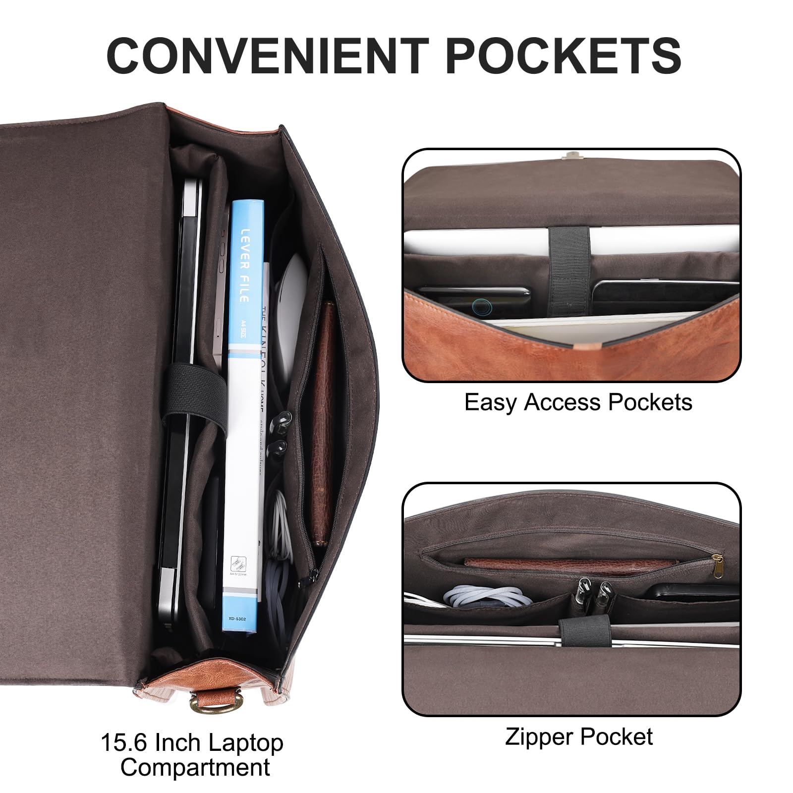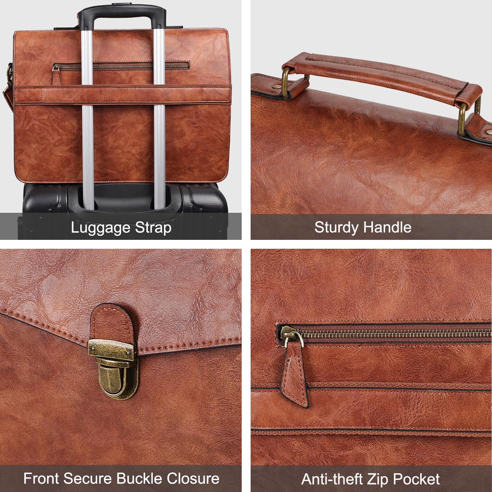 Ordered the 15.6" in brown, and liked it so much that I immediately picked up the black one, too. Has the look of a much more expensive business brief/case. The shoulder strap, handles, and all metal connectors and clasps function very nicely, as does the strap across the back to attach to your upright suitcase handle when extended.
